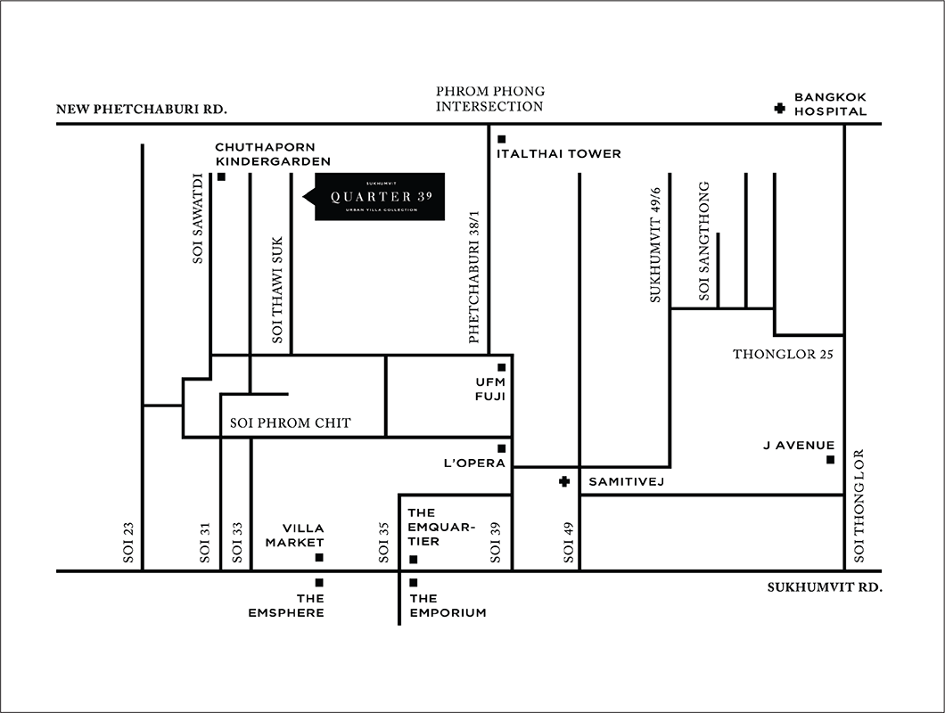 An exclusive community of 15 courtyard villas on freehold land in Sukhumvit 39. With ample space for all family members, thought-through design that is mindful of their future needs, and top-class facilities unprecedented in such boutique development, Quarter 39 is the urban home you’ve been searching for.